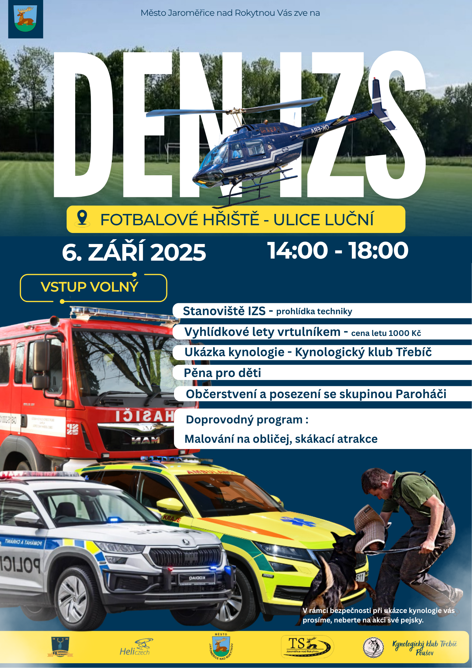 Město Jaroměřice nad Rokytnou vás zve na na Den IZS, kde budete moct vidět ukázky výcviku našich psů.